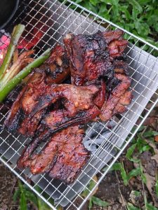 While the whole point of camping is (in my opinion) to slow down and convene with nature, we didn’t want to miss the opportunity of doing it in not the conventional way, at least when it came to food. While barbecue, canned sausages, and hotdogs were the usual stars of the show in this almost man-made wilderness, we felt the need to level our meals with the previously enjoyed steak gourmet. Sugar decided that sizzling sisig would be fun to make and would definitely bring our camping experience to the next level. And it did, along with her well-seasoned pork belly barbecue.